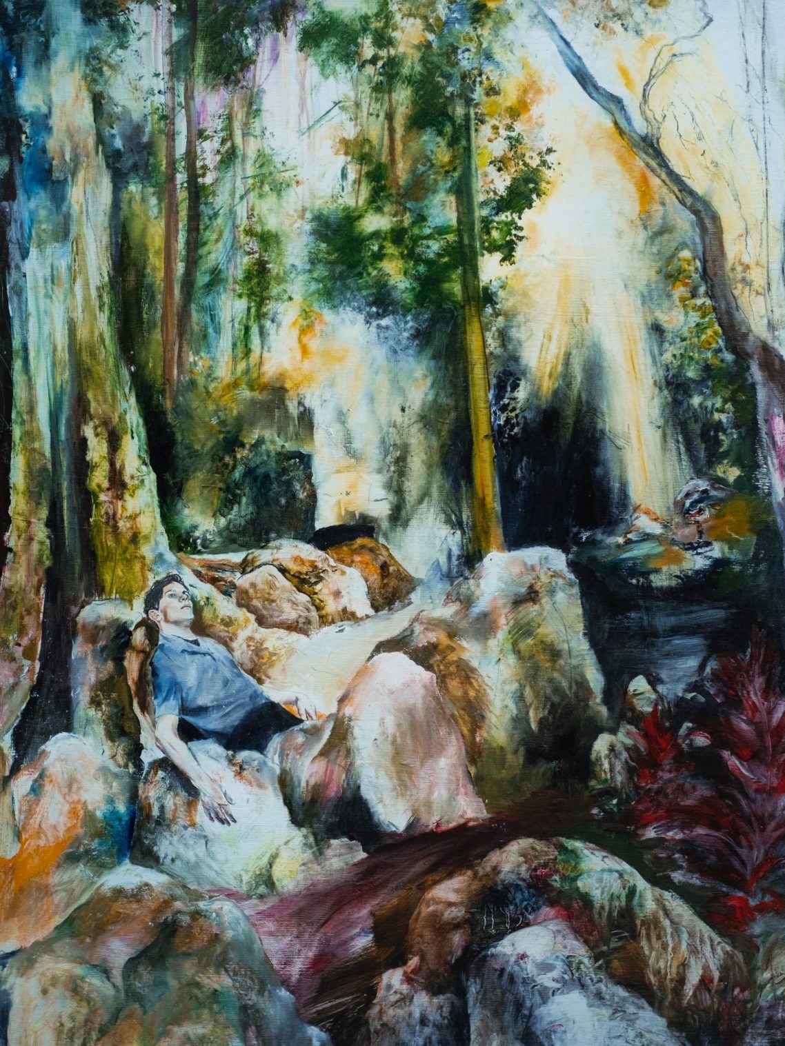 Dans une atmosphère poétique, où le surnaturel effleure une peinture réaliste, les figures se fondent et se dissipent dans une alternance de clarté et d’obscurité. Les personnages,solitaires, incarnent des instants suspendus, là où lesouffle de la nature se mêle à celui de l’intériorité.